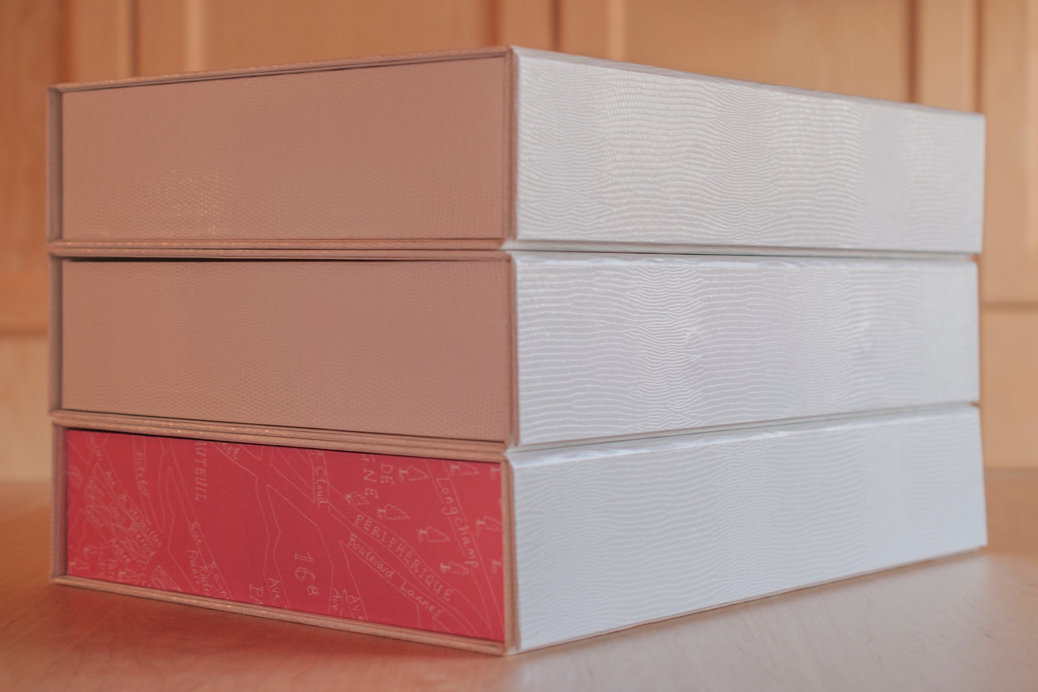 もしかしたら、中のファイルをひっぱりあげるための、リボン付のしきりは柄ありにして、2枚くらいあってもよいかもです