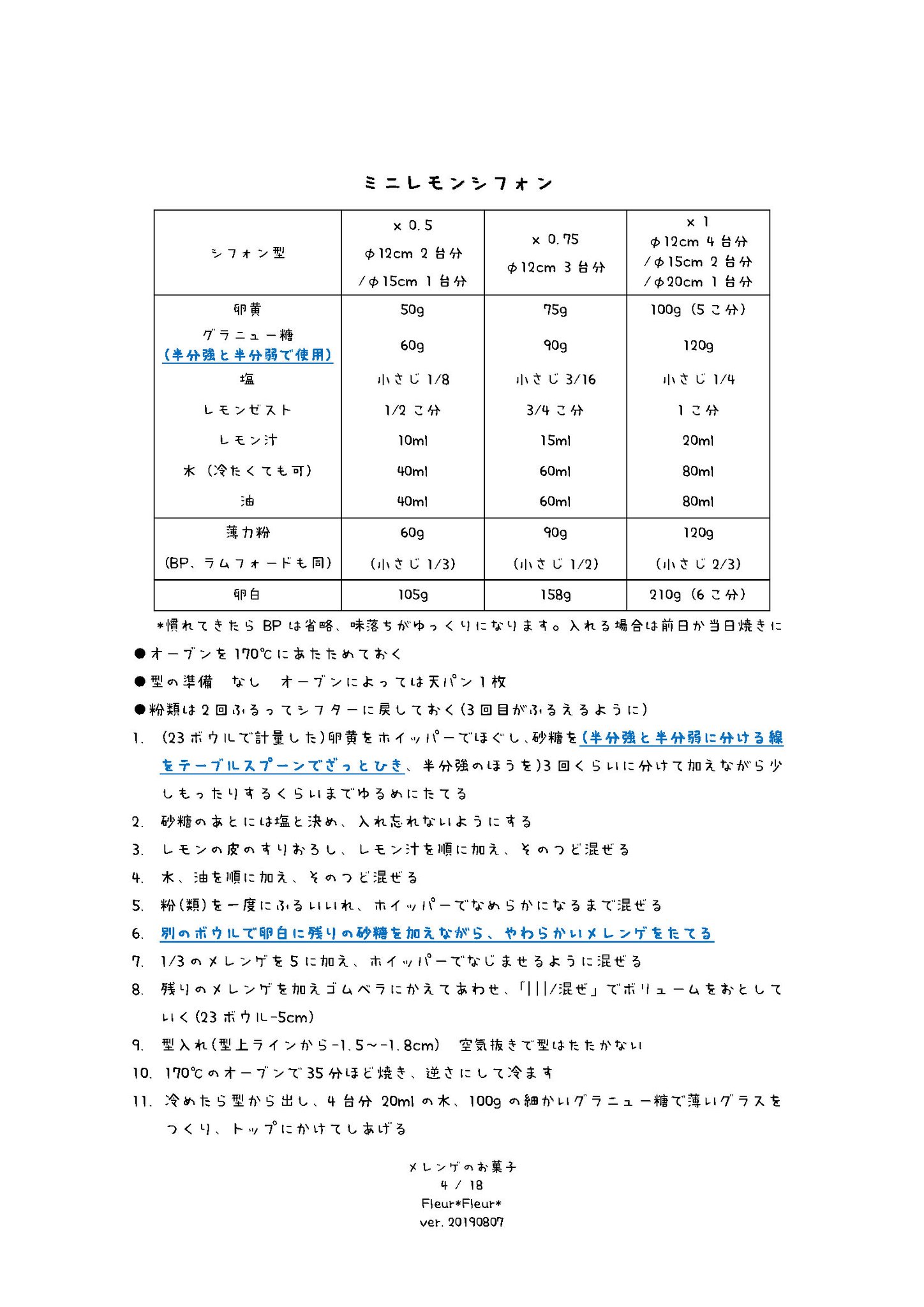 個々のレシピファイルのうち、表紙である1枚レシピを、メレンゲの部分にのみハイライトし直したまとめです
